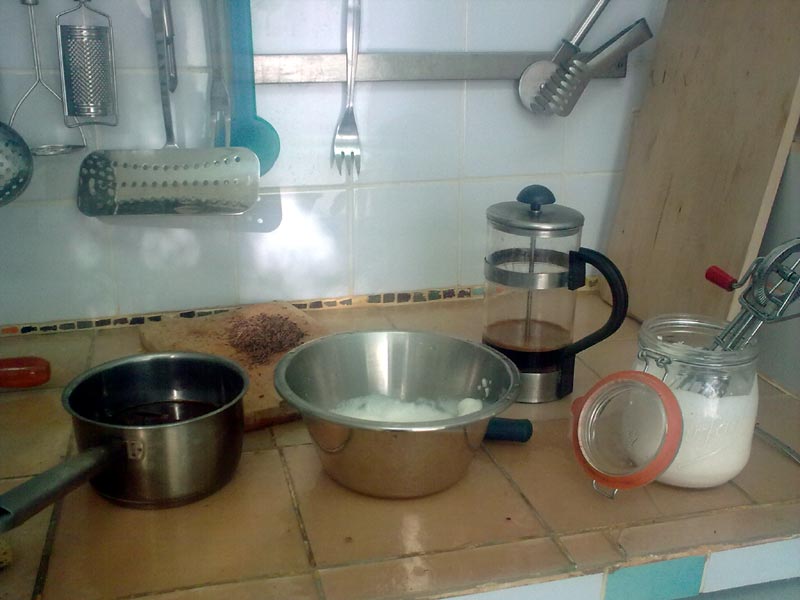 Mousse au Chocolat – Zutaten: Eischnee, Sahne, Schokolade, Kaffee …